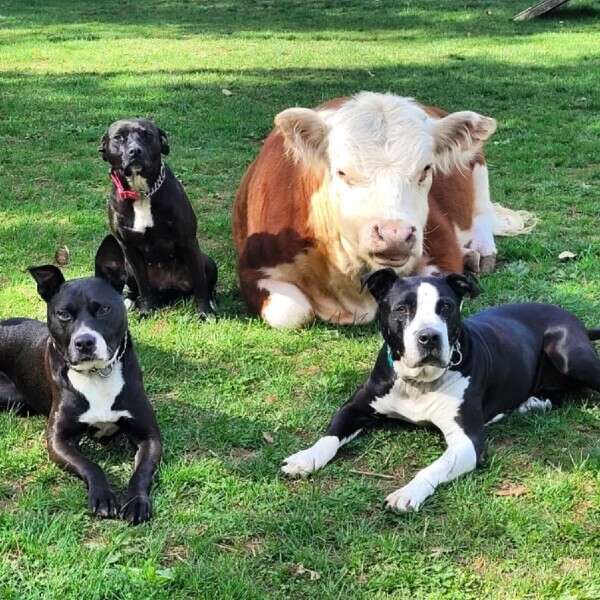 Mini Cow Who Lost His Herd Gets Adopted By Pack Of Dogs The Dodo